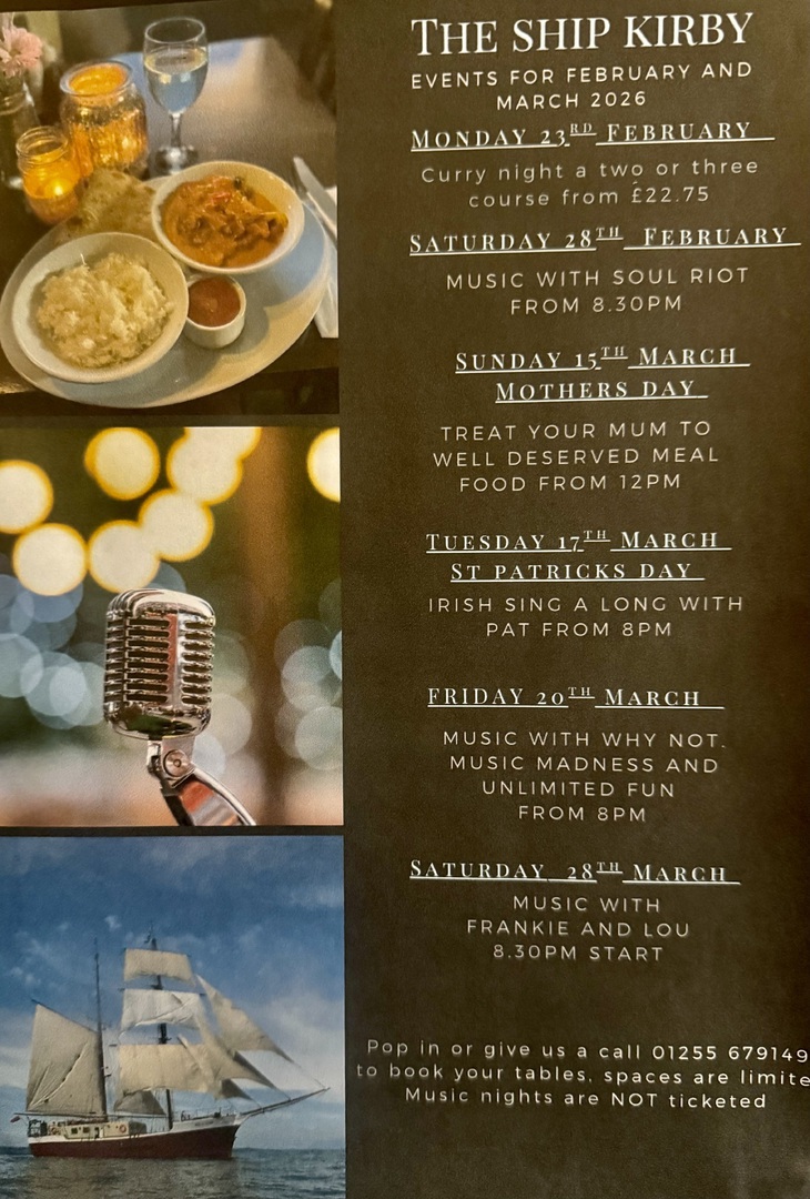The Ship Kirby-Le-Soken Free House Pub & Restaurant Telephone: 01255 679149
